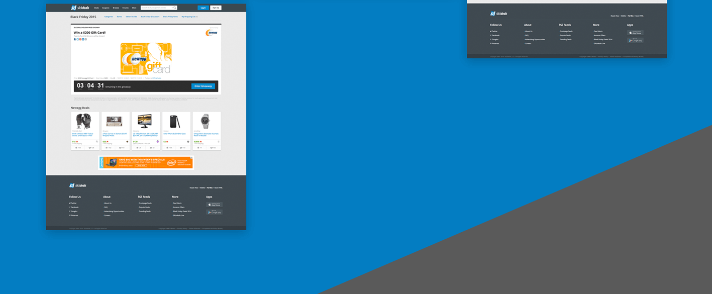 Slickdeals is a crowd-sourced deal and coupon site that, during my time there, catered to over 11M+ monthly visitors. I led the design on Black Friday projects.